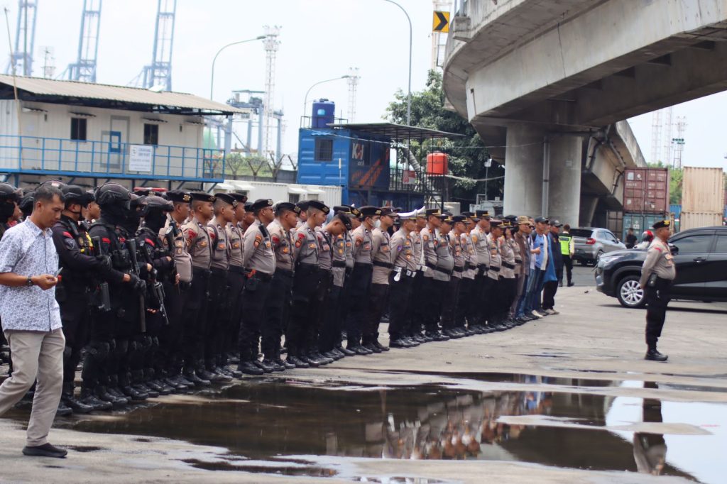 Apel pengamanan dilaksanakan pada pukul 11.40 WIB bertempat di Lapangan Kerta Api Logistik, Pelabuhan Tanjung Priok. Kegiatan ini dipimpin langsung oleh Kapolres Pelabuhan Tanjung Priok, AKBP Dr. Martuasah H. Tobing, S.I.K., M.H.